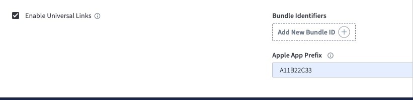 - Return to the Configuration page in Branch Dashboard, and click the “Add New Bundle ID” button in order to add your Bundle ID.