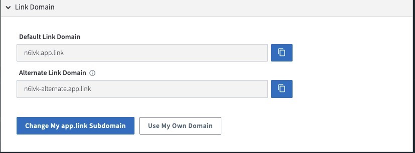 - You can locate these values for your app in your Branch Dashboard through App Settings and Link Settings.