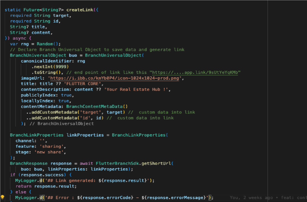 Dynamic Links are powerful features that enable apps to create and manage links, they work seamlessly across different platforms and contexts. On the other hand, Branch.io is a platform for managing these links, offering extensive capabilities for both tracking and user engagement. Therefore, integrating Dynamic Links to Branch.io with Flutter applications can enhance user acquisition, improve retention, and streamline user experiences. This article will provide a complete guide to integrate dynamic link using Branch.io in a Flutter project.