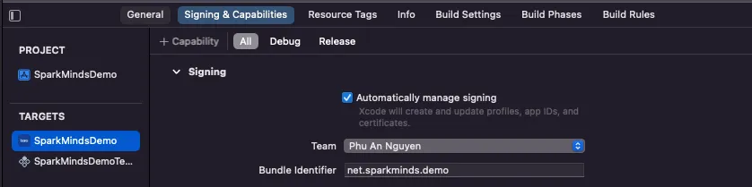 - Search the bundle identifier of your project in Xcode, under the Signing & Capabilities tab