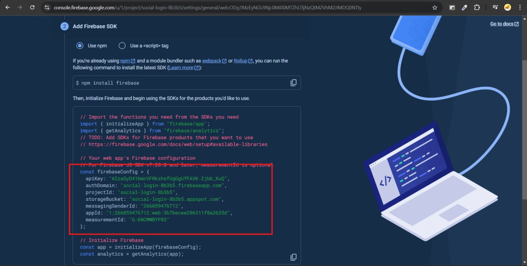 - Enter the information from the firebaseConfig section into the corresponding fields in the env file.