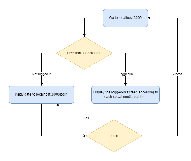 It proceeds to display a logged-in screen tailored to the specific social media platform the user is accessing.